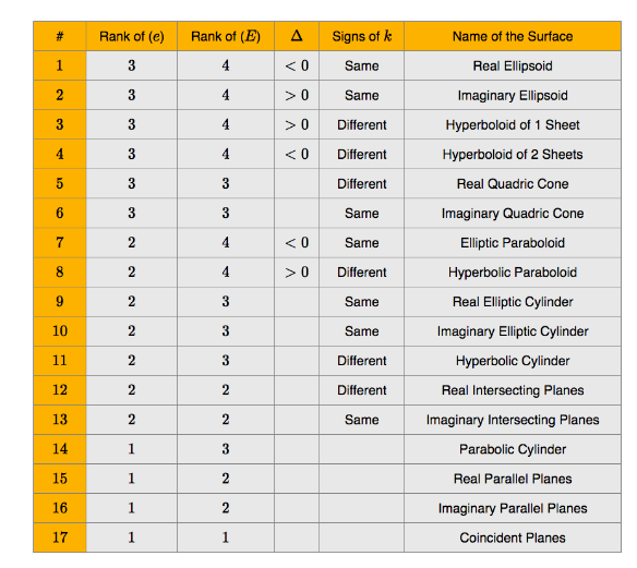 (discriminants), the equation becomes \(\mathbf x^t E \mathbf x = 0\) and we have a classification: